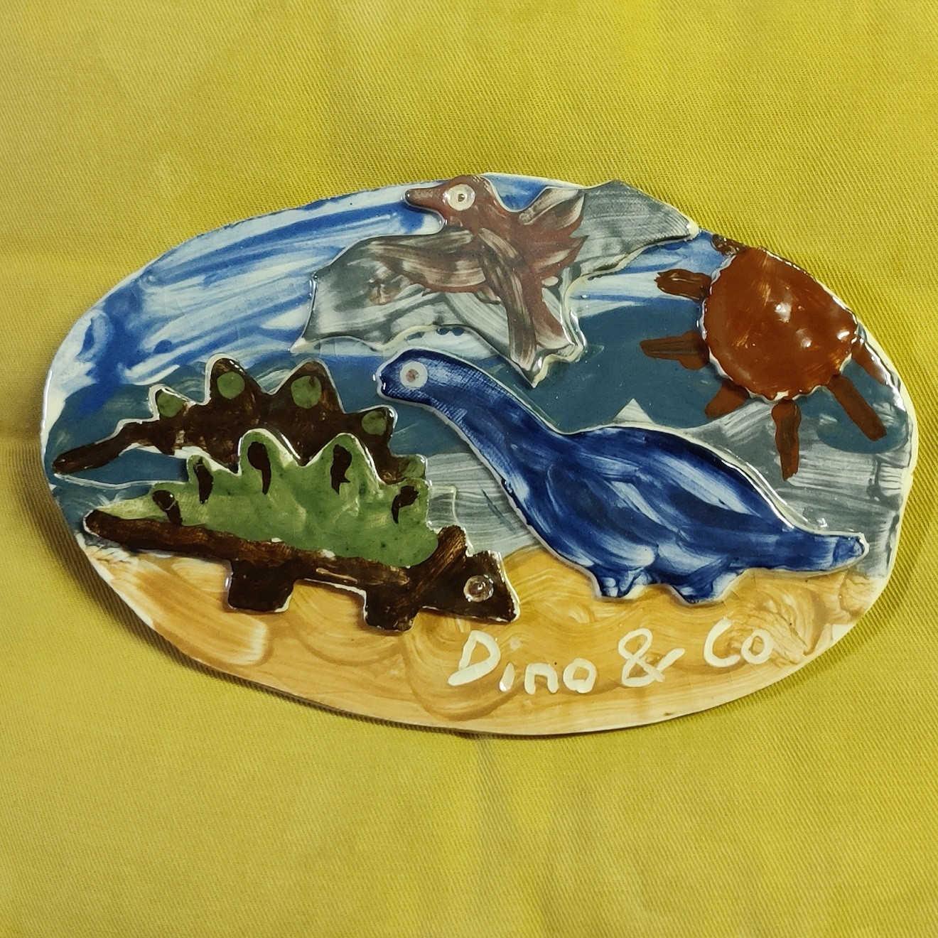 Töpfern von Namensschildern zum Thema "Dino"